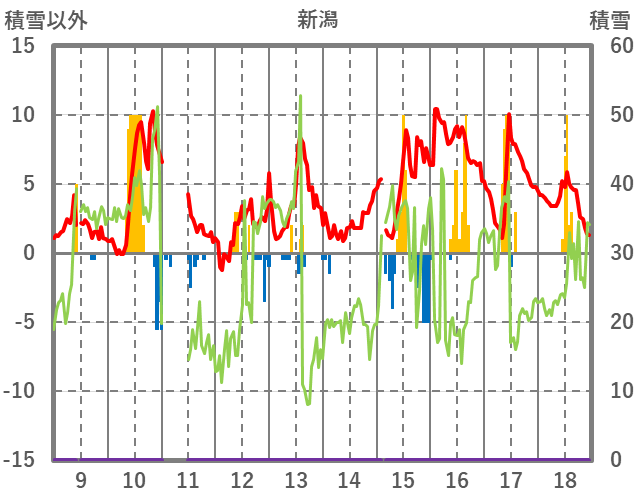 | 日 | 時 | 気温 | 降水 | 風向/風速 | 日照 | 積雪 | 降雪 |
