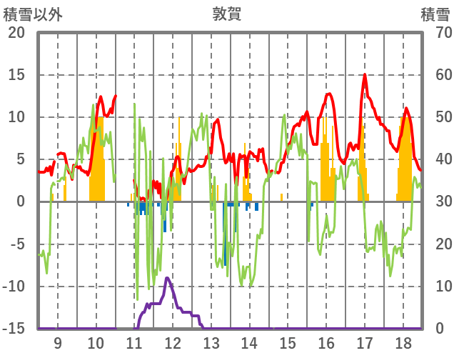 | 日 | 時 | 気温 | 降水 | 風向/風速 | 日照 | 積雪 | 降雪 |