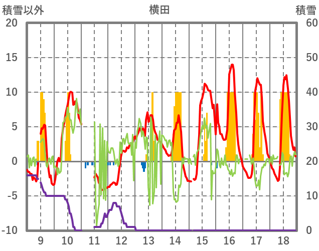 | 日 | 時 | 気温 | 降水 | 風向/風速 | 日照 | 積雪 | 降雪 |