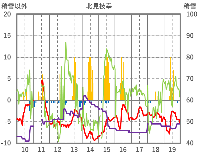 | 日 | 時 | 気温 | 降水 | 風向/風速 | 日照 | 積雪 | 降雪 |