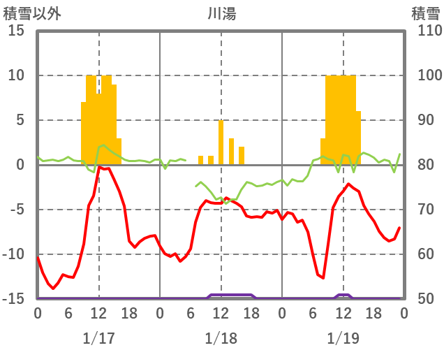| 日 | 時 | 気温 | 降水 | 風向/風速 | 日照 | 積雪 | 降雪 |