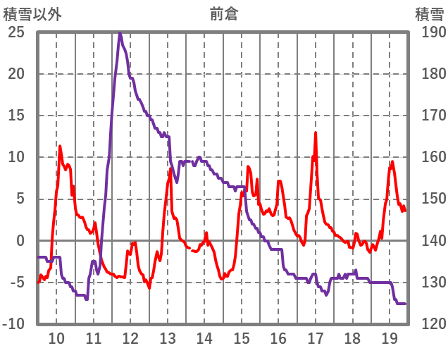 | 日 | 時 | 気温 | 降水 | 風向/風速 | 日照 | 積雪 | 降雪 |