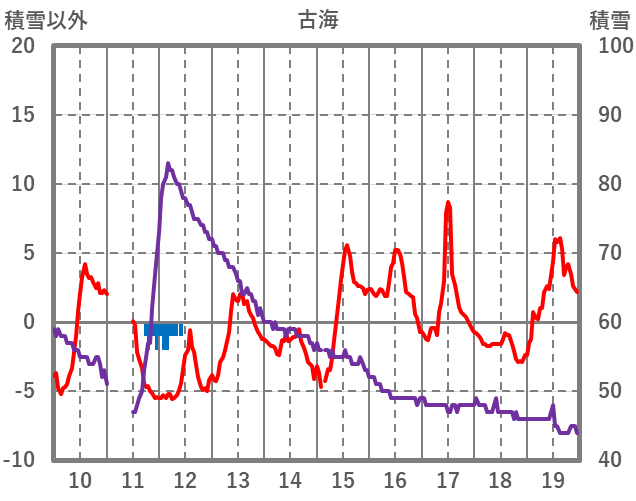 | 日 | 時 | 気温 | 降水 | 風向/風速 | 日照 | 積雪 | 降雪 |
