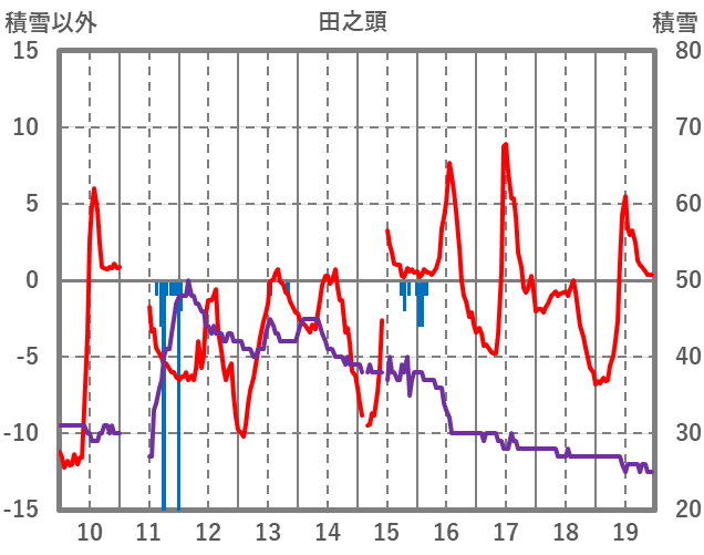 | 日 | 時 | 気温 | 降水 | 風向/風速 | 日照 | 積雪 | 降雪 |