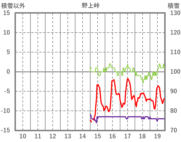| 日 | 時 | 気温 | 降水 | 風向/風速 | 日照 | 積雪 | 降雪 |