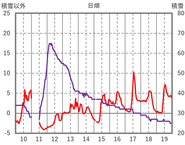| 日 | 時 | 気温 | 降水 | 風向/風速 | 日照 | 積雪 | 降雪 |