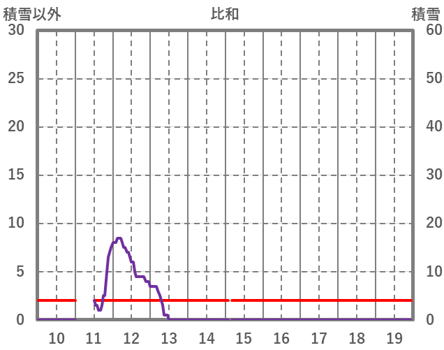 | 日 | 時 | 気温 | 降水 | 風向/風速 | 日照 | 積雪 | 降雪 |