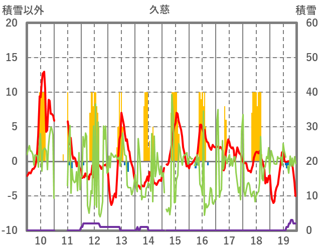 | 日 | 時 | 気温 | 降水 | 風向/風速 | 日照 | 積雪 | 降雪 |