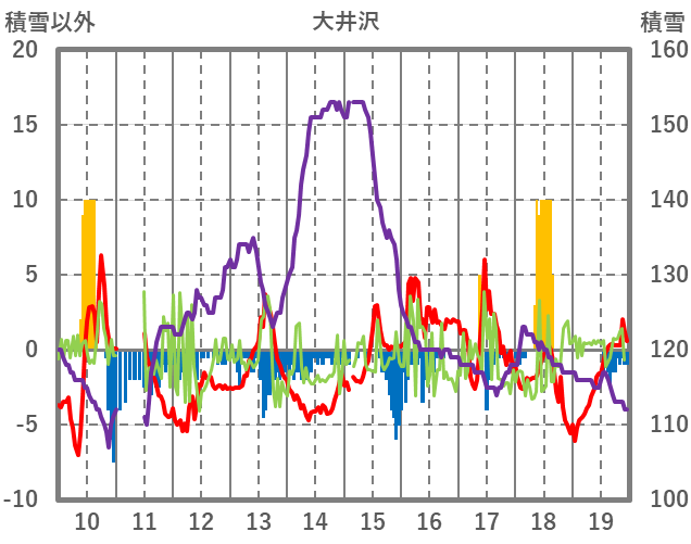 | 日 | 時 | 気温 | 降水 | 風向/風速 | 日照 | 積雪 | 降雪 |