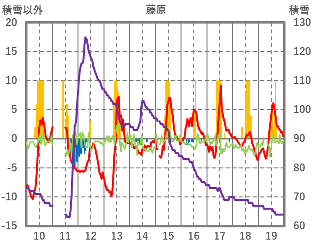 | 日 | 時 | 気温 | 降水 | 風向/風速 | 日照 | 積雪 | 降雪 |