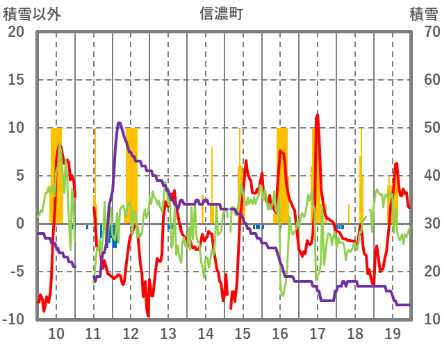 | 日 | 時 | 気温 | 降水 | 風向/風速 | 日照 | 積雪 | 降雪 |
