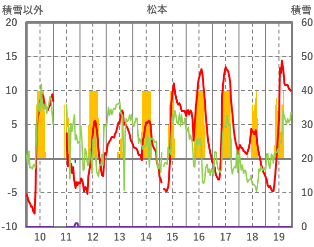 | 日 | 時 | 気温 | 降水 | 風向/風速 | 日照 | 積雪 | 降雪 |