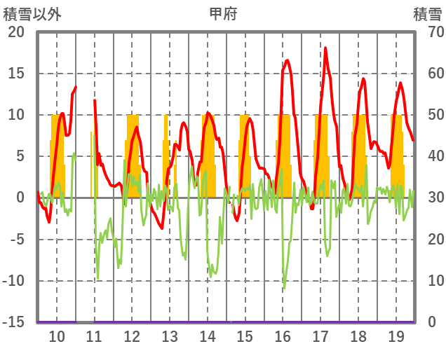 | 日 | 時 | 気温 | 降水 | 風向/風速 | 日照 | 積雪 | 降雪 |