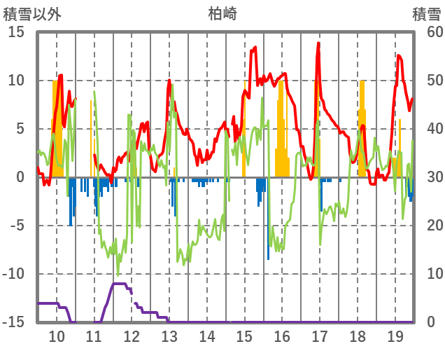 | 日 | 時 | 気温 | 降水 | 風向/風速 | 日照 | 積雪 | 降雪 |