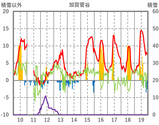 | 日 | 時 | 気温 | 降水 | 風向/風速 | 日照 | 積雪 | 降雪 |