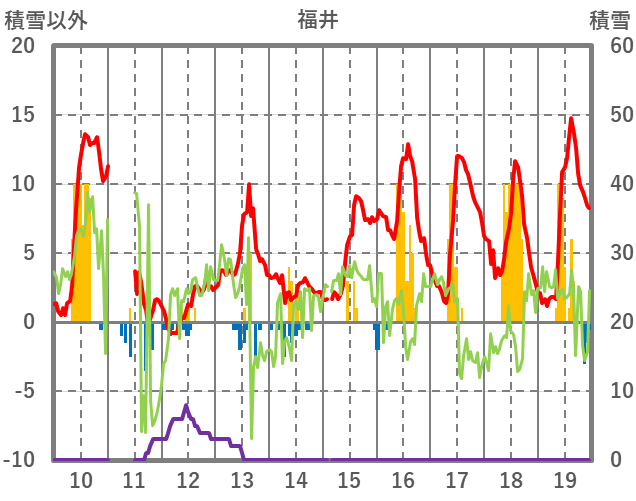 | 日 | 時 | 気温 | 降水 | 風向/風速 | 日照 | 積雪 | 降雪 |