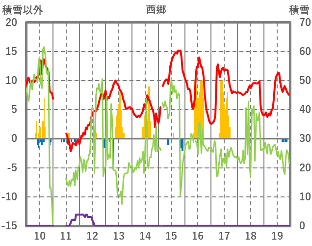 | 日 | 時 | 気温 | 降水 | 風向/風速 | 日照 | 積雪 | 降雪 |