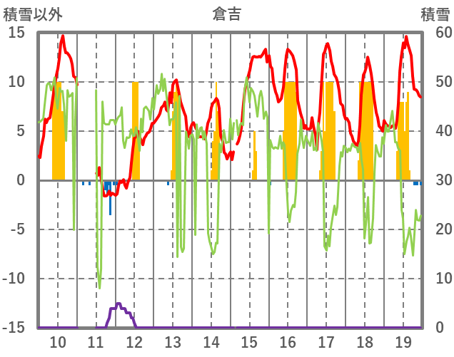| 日 | 時 | 気温 | 降水 | 風向/風速 | 日照 | 積雪 | 降雪 |