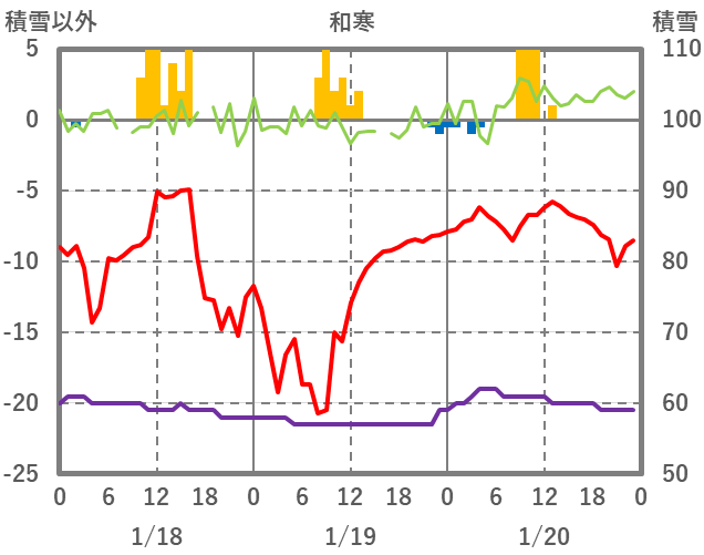 | 日 | 時 | 気温 | 降水 | 風向/風速 | 日照 | 積雪 | 降雪 |