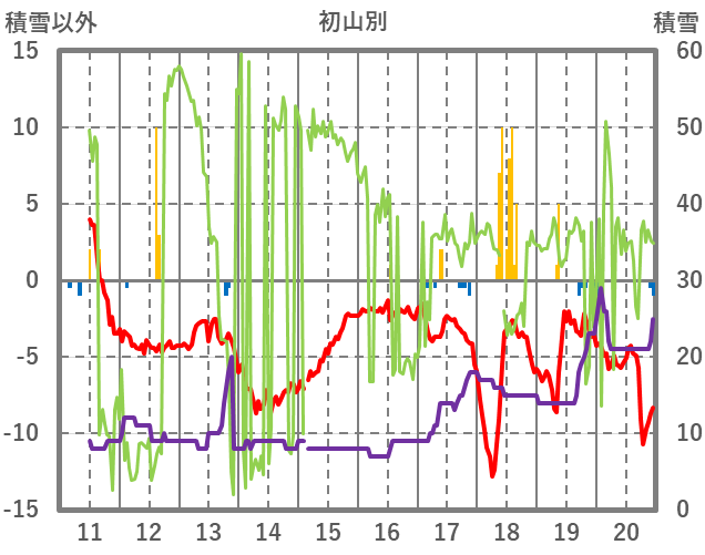| 日 | 時 | 気温 | 降水 | 風向/風速 | 日照 | 積雪 | 降雪 |