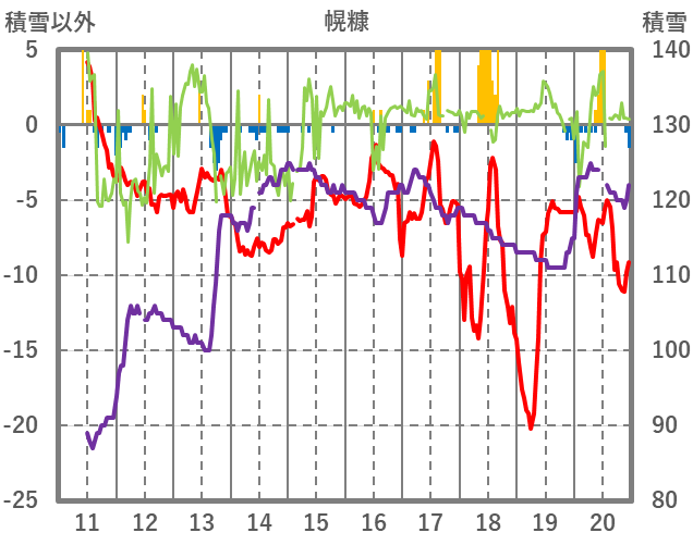 | 日 | 時 | 気温 | 降水 | 風向/風速 | 日照 | 積雪 | 降雪 |