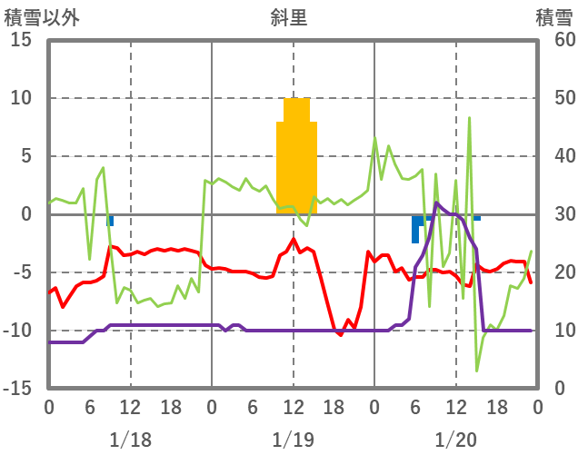 | 日 | 時 | 気温 | 降水 | 風向/風速 | 日照 | 積雪 | 降雪 |