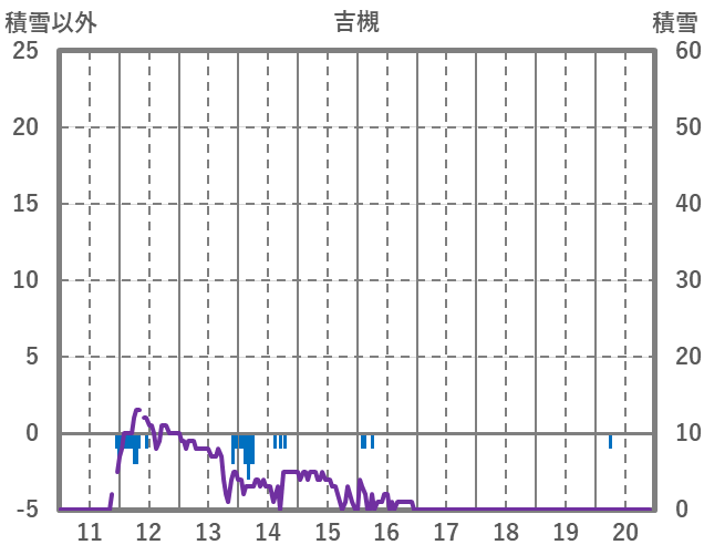 | 日 | 時 | 気温 | 降水 | 風向/風速 | 日照 | 積雪 | 降雪 |