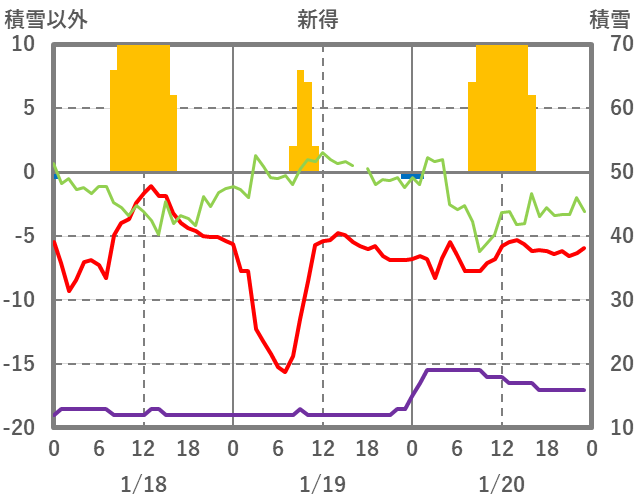 | 日 | 時 | 気温 | 降水 | 風向/風速 | 日照 | 積雪 | 降雪 |