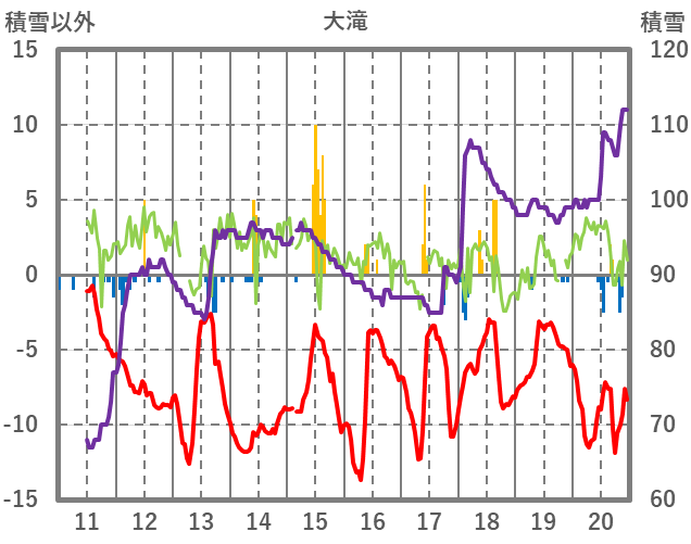 | 日 | 時 | 気温 | 降水 | 風向/風速 | 日照 | 積雪 | 降雪 |