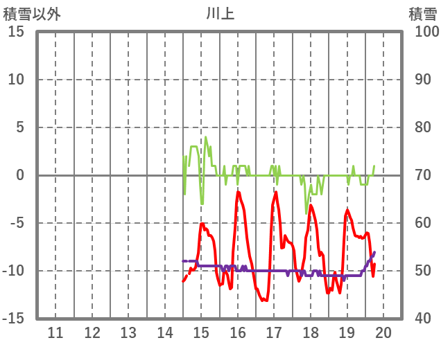 | 日 | 時 | 気温 | 降水 | 風向/風速 | 日照 | 積雪 | 降雪 |