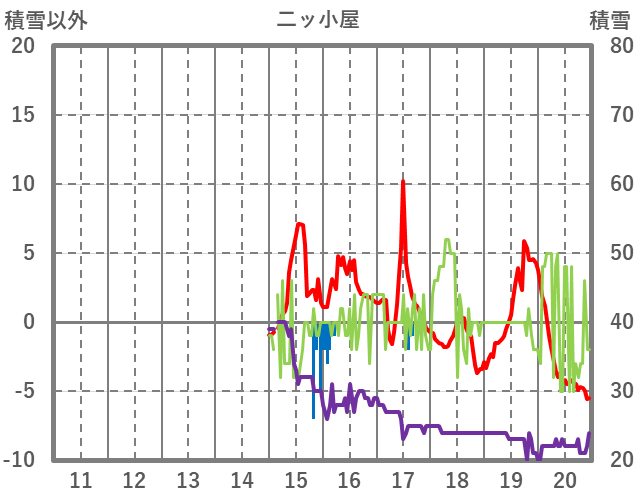 | 日 | 時 | 気温 | 降水 | 風向/風速 | 日照 | 積雪 | 降雪 |
