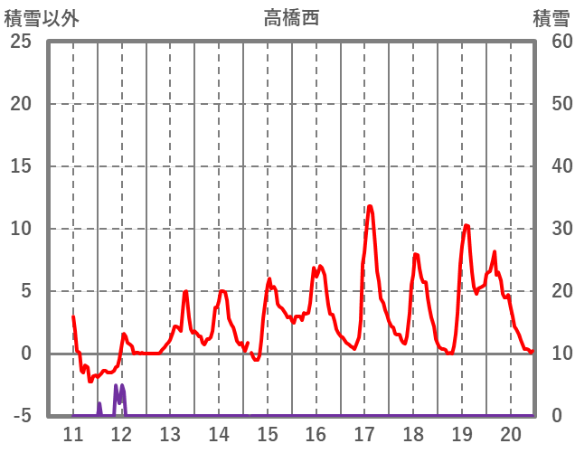| 日 | 時 | 気温 | 降水 | 風向/風速 | 日照 | 積雪 | 降雪 |