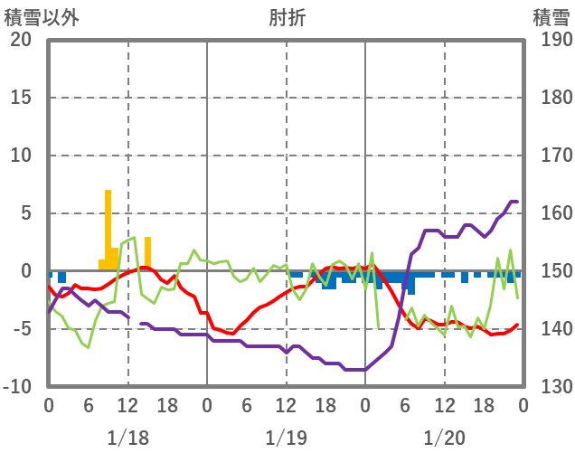 | 日 | 時 | 気温 | 降水 | 風向/風速 | 日照 | 積雪 | 降雪 |