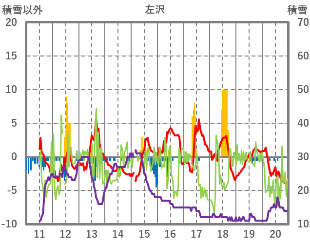 | 日 | 時 | 気温 | 降水 | 風向/風速 | 日照 | 積雪 | 降雪 |