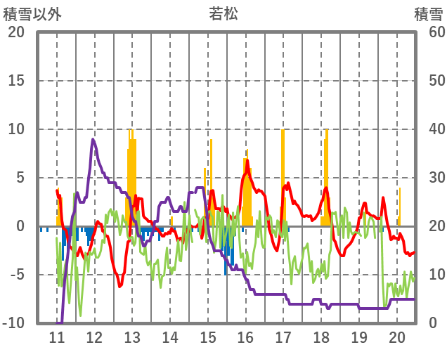 | 日 | 時 | 気温 | 降水 | 風向/風速 | 日照 | 積雪 | 降雪 |