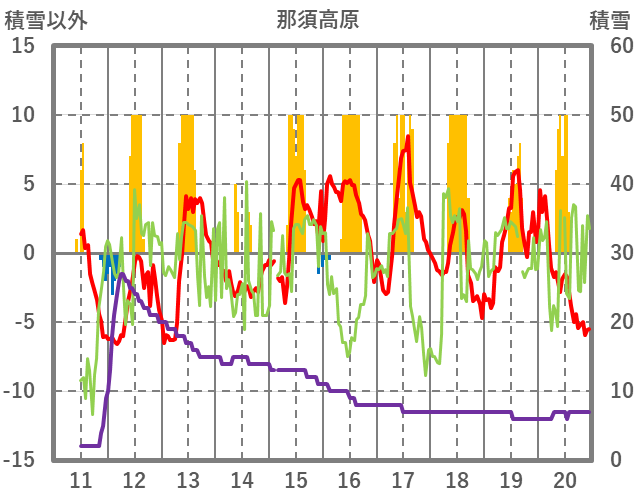 | 日 | 時 | 気温 | 降水 | 風向/風速 | 日照 | 積雪 | 降雪 |