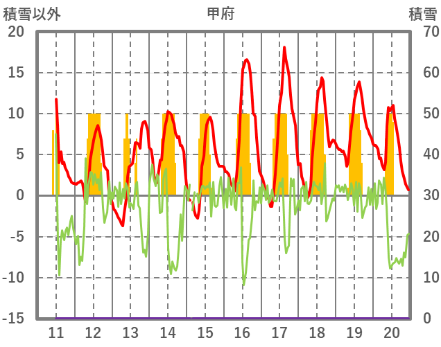 | 日 | 時 | 気温 | 降水 | 風向/風速 | 日照 | 積雪 | 降雪 |