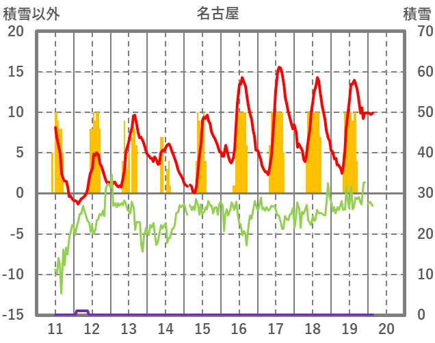 | 日 | 時 | 気温 | 降水 | 風向/風速 | 日照 | 積雪 | 降雪 |