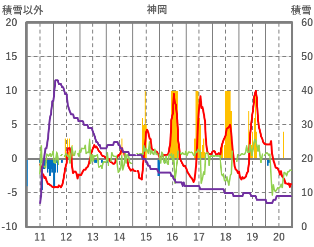| 日 | 時 | 気温 | 降水 | 風向/風速 | 日照 | 積雪 | 降雪 |