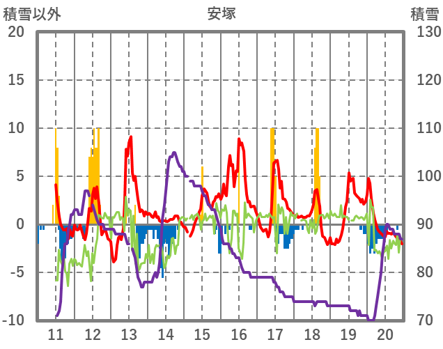 | 日 | 時 | 気温 | 降水 | 風向/風速 | 日照 | 積雪 | 降雪 |