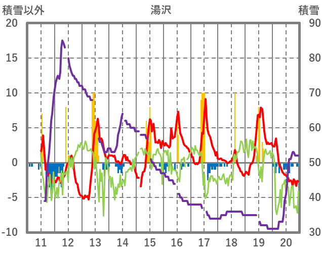 | 日 | 時 | 気温 | 降水 | 風向/風速 | 日照 | 積雪 | 降雪 |
