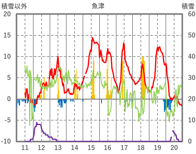 | 日 | 時 | 気温 | 降水 | 風向/風速 | 日照 | 積雪 | 降雪 |