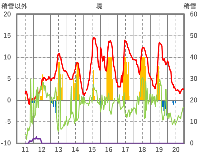 | 日 | 時 | 気温 | 降水 | 風向/風速 | 日照 | 積雪 | 降雪 |