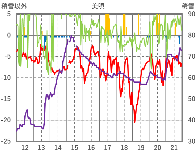 | 日 | 時 | 気温 | 降水 | 風向/風速 | 日照 | 積雪 | 降雪 |