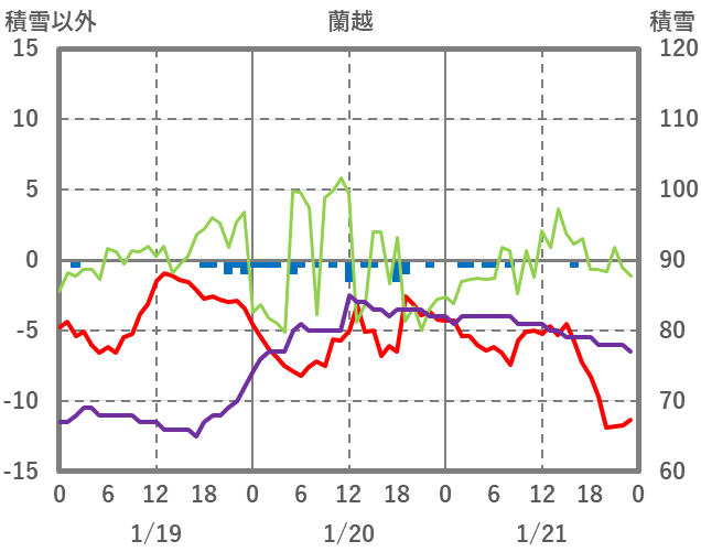 | 日 | 時 | 気温 | 降水 | 風向/風速 | 日照 | 積雪 | 降雪 |