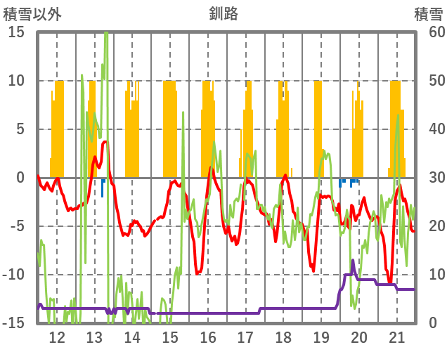 | 日 | 時 | 気温 | 降水 | 風向/風速 | 日照 | 積雪 | 降雪 |