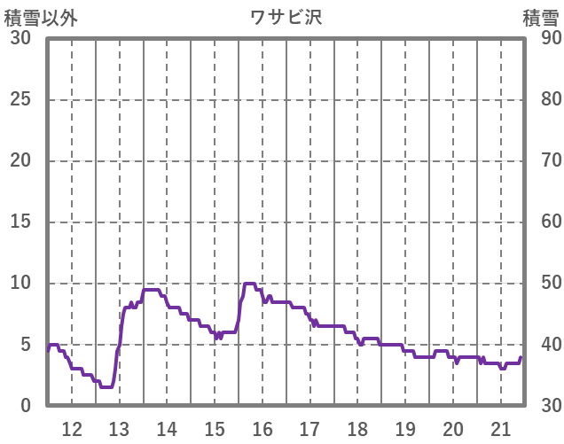 | 日 | 時 | 気温 | 降水 | 風向/風速 | 日照 | 積雪 | 降雪 |