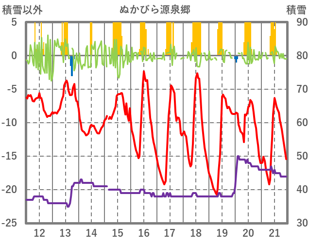 | 日 | 時 | 気温 | 降水 | 風向/風速 | 日照 | 積雪 | 降雪 |