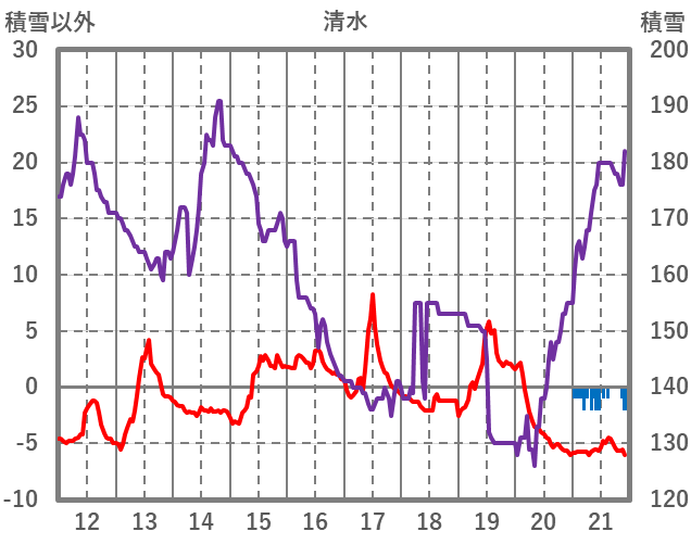 | 日 | 時 | 気温 | 降水 | 風向/風速 | 日照 | 積雪 | 降雪 |