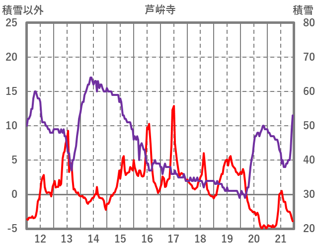| 日 | 時 | 気温 | 降水 | 風向/風速 | 日照 | 積雪 | 降雪 |